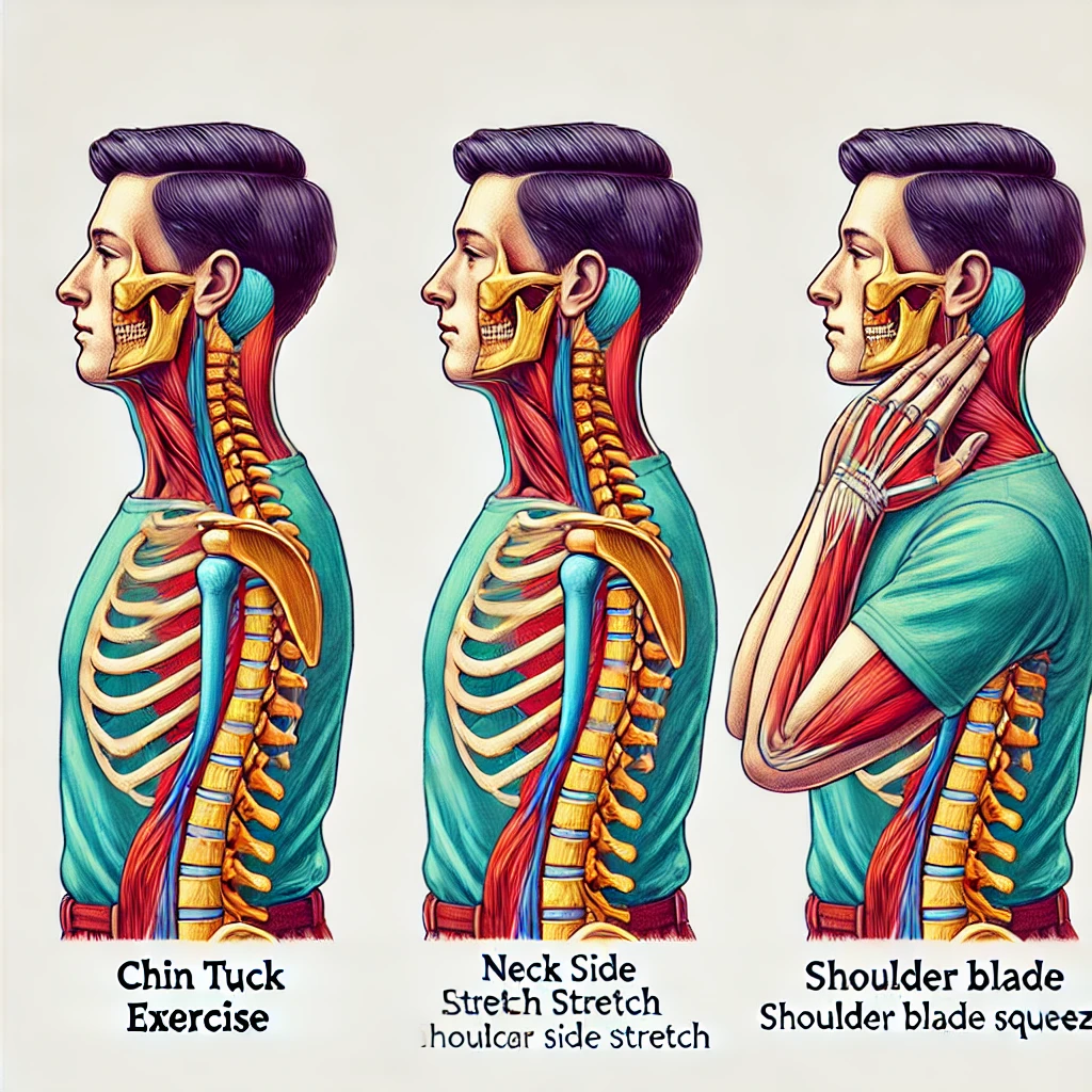 - 목에 무리 가는 행동은 자제하기 : 한 손으로 무거운 것을 들거나, 목을 갑자기 크게 젖히거나 돌리는 행동은 피합니다.