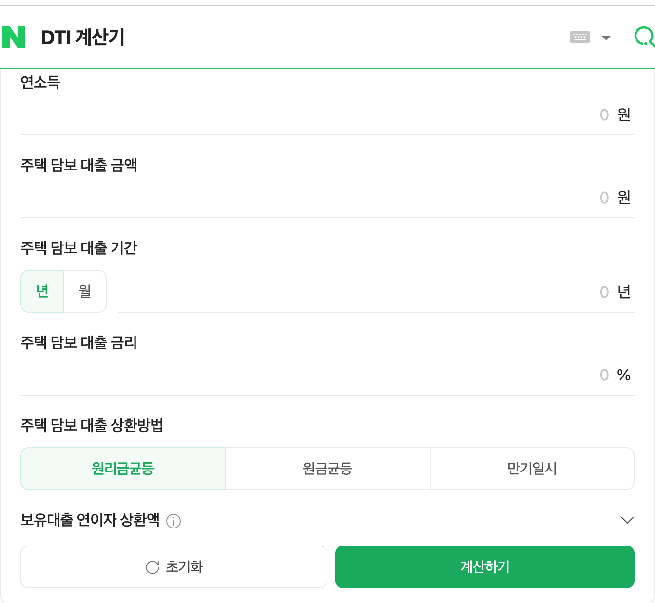 DTI = (해당 주택담보대출의 연간 원리금 상환액 + 기타부채의 연간 이자상환액) / 연소득 × 100