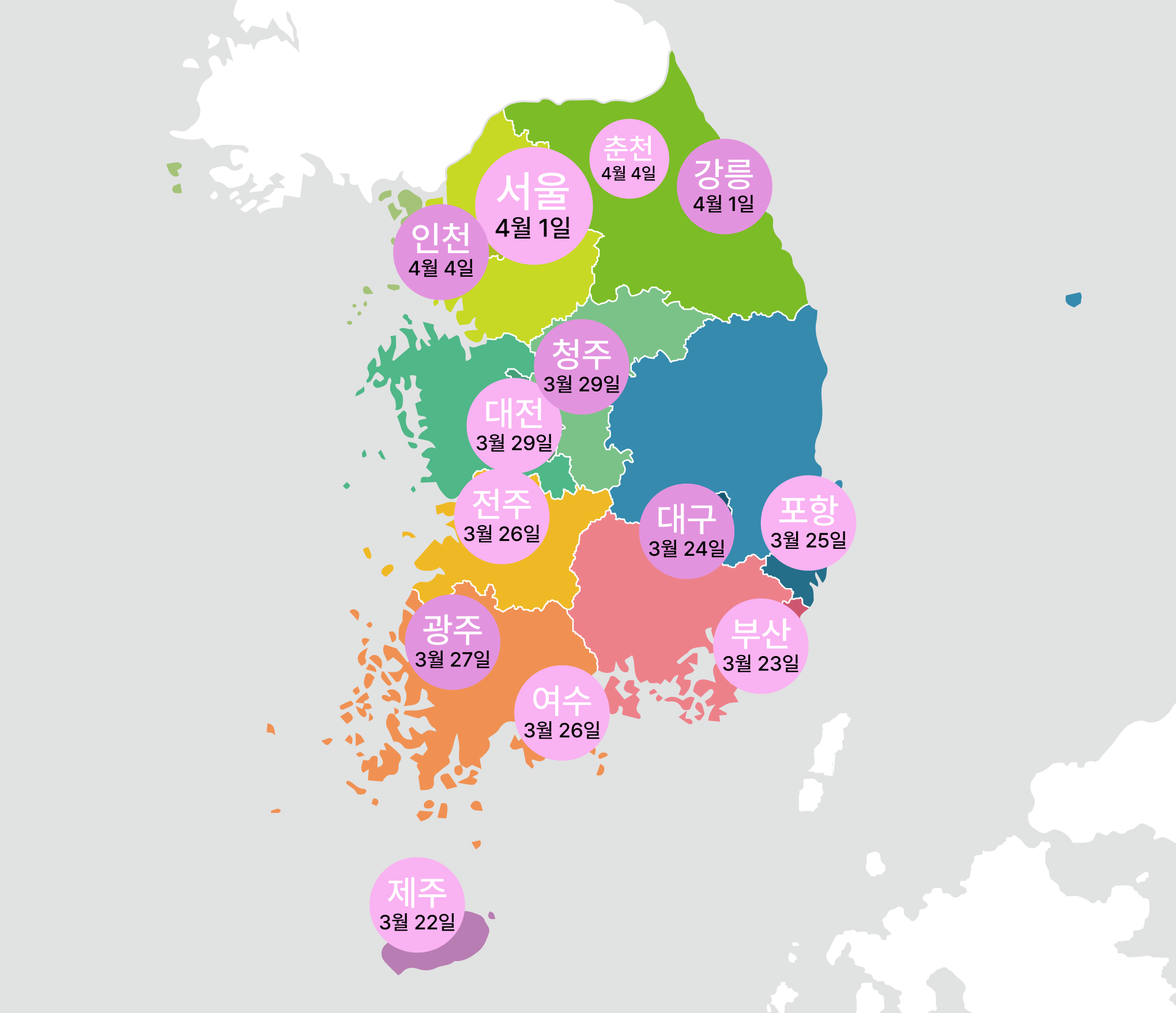 지역별 벚꽃 개화 및 만개 예상 시기🌸