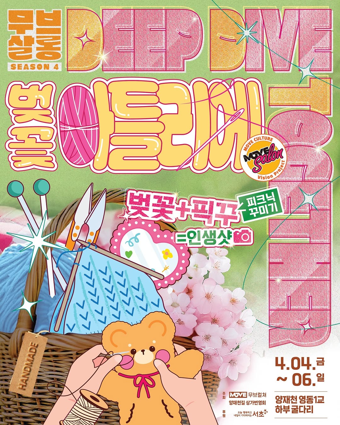 - 시즌제로 운영되는 무브살롱은 매회 새로운 테마를 통해 취향을 발견하고, 공감과 소통을 나누는 축제형 살롱으로 무브살롱이 네 번째 시즌을 맞이하며, 이번에는 ‘벚꽃&공예’를 주제로 자연과 예술이 조화를 이루는 창작의 장을 마련하여 벚꽃이 피어나는 계절, 자연 속에서 창작의 즐거움을 경험할 수 있는 특별한 순간을 만나실 수 있습니다.