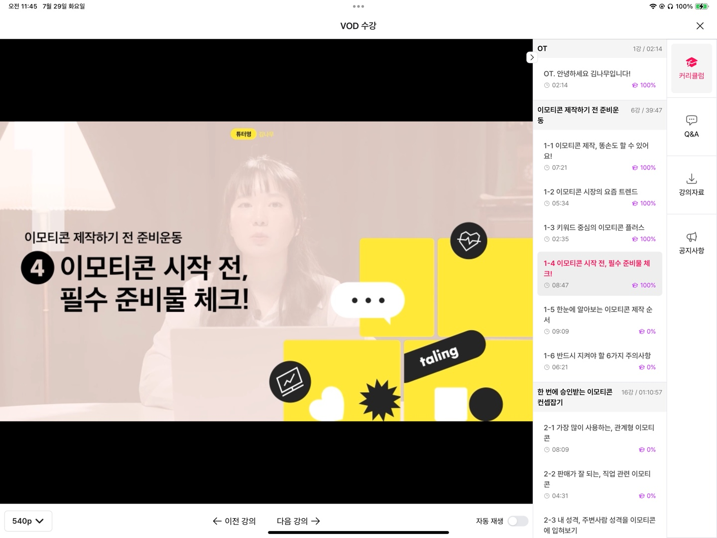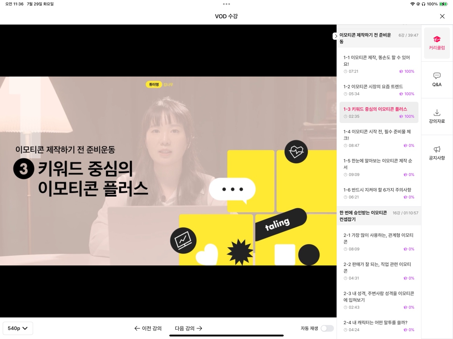그렇게 이모티콘 플러스에 대한 내용을 약 2분 30초 설명을 듣고 난 후